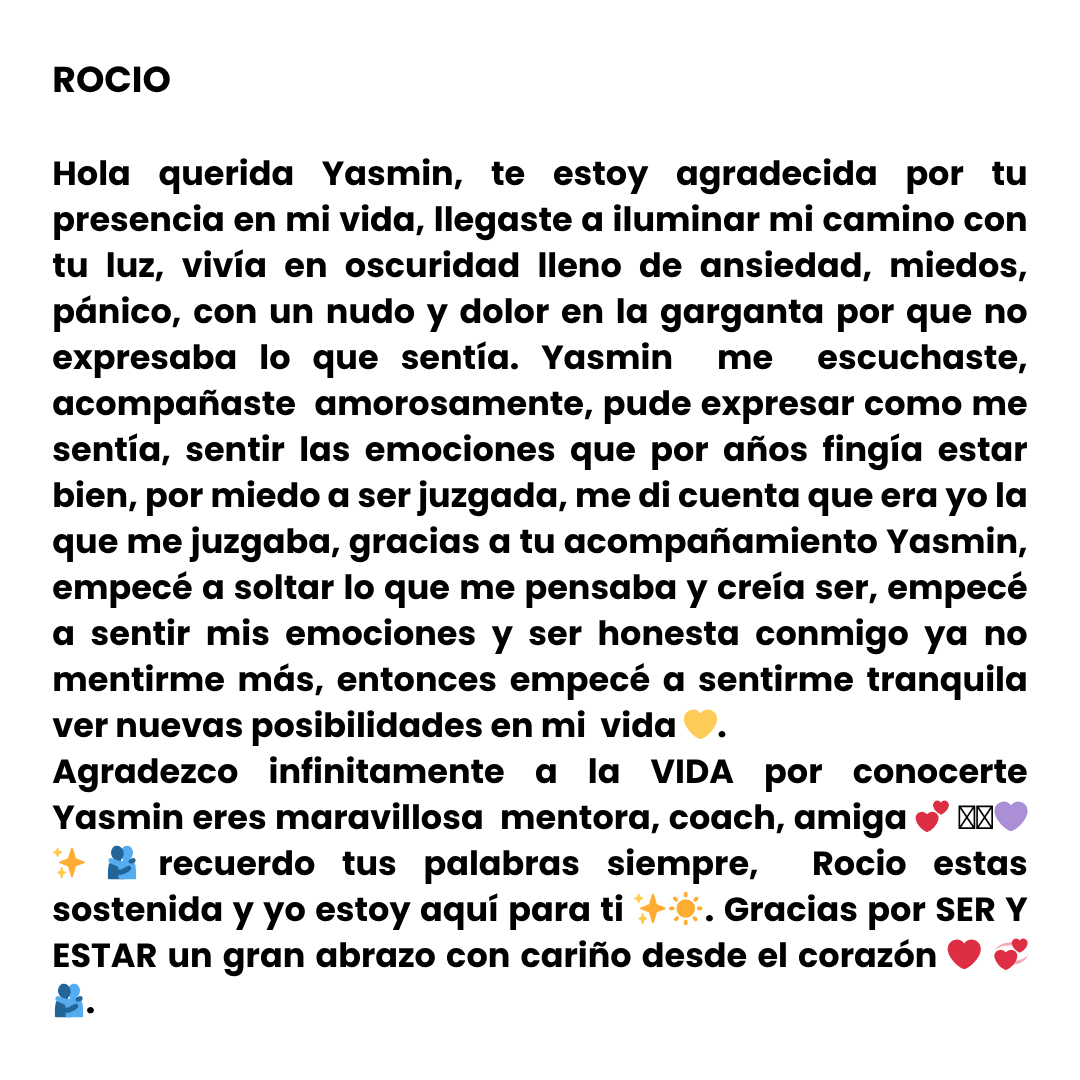 La información compartida no sustituye atención médica o psicológica. Las sesiones de coaching están orientadas al bienestar emocional y desarrollo personal.